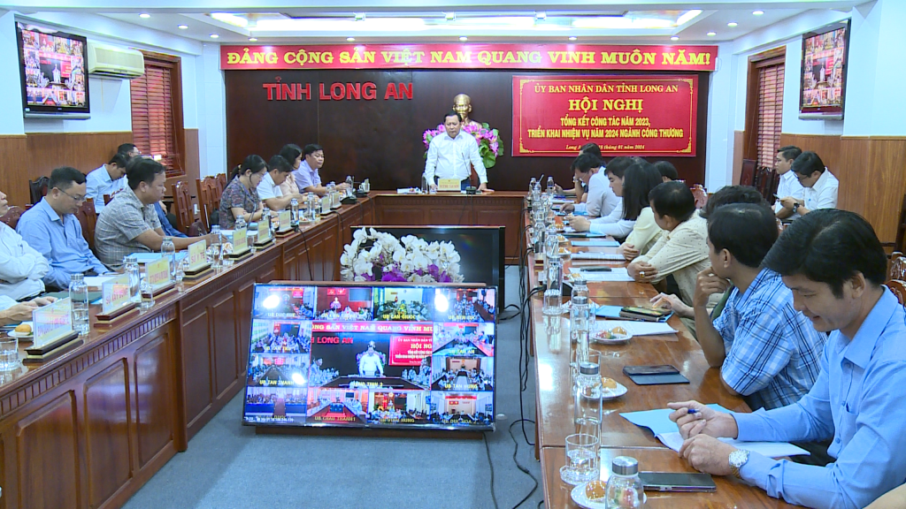Phát biểu tại hội nghị, PCT UBND tỉnh Huỳnh Văn Sơn ghi nhận và đánh giá cao những nỗ lực của ngành Công Thương trong năm vừa qua. PCT UBND tỉnh đề nghị ngành công thương tiếp tục phát huy tinh thần đồng hành cùng doanh nghiệp, hỗ trợ doanh nghiệp đẩy nhanh tốc độ phục hồi sản xuất kinh doanh. Hỗ trợ các doanh nghiệp đẩy nhanh tiến độ đầu tư hạ tầng các cụm công nghiệp; chủ động tháo gỡ những điểm nghẽn, nút thắt, vướng mắc cho doanh nghiệp bảo đảm thực chất, hiệu quả. Tiếp tục đẩy mạnh các hoạt động xúc tiến đầu tư, các giải pháp cải thiện môi trường đầu tư kinh doanh và hỗ trợ doanh nghiệp. Phấn đấu hoàn thành các mục tiêu mà ngành đã đề ra trong năm 2024.