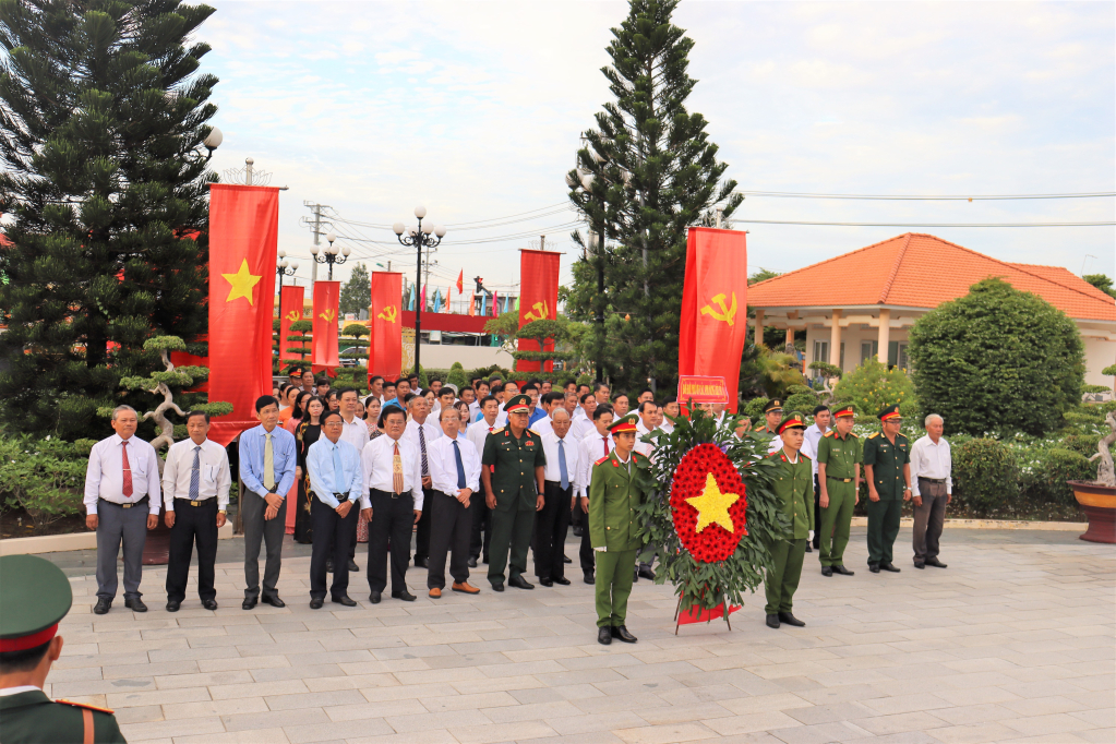 Trong không khí trang nghiêm, các đồng chí lãnh đạo thực hiện nghi thức dâng hương, tưởng niệm tại tượng đài liệt sĩ, mộ liệt sĩ, bày tỏ lòng biết ơn đối với những người con của quê hương đã hy sinh cuộc đời của mình cho sự nghiệp đấu tranh giải phóng dân tộc, tạo nên mốc son chói lọi trong trang sử cách mạng hào hùng.