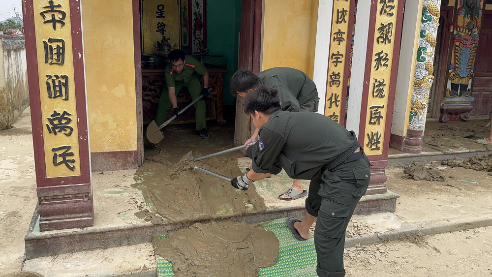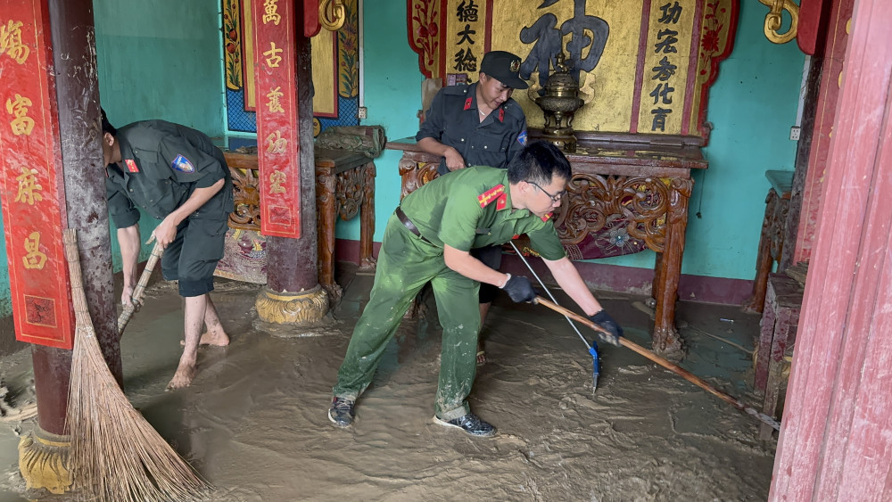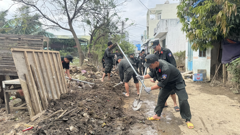 Trong thời gian làm nhiệm vụ, cán bộ, chiến sĩ phối hợp Công an tỉnh Gia Lai và chính quyền xã Tuy Phước, phường Quy Nhơn Đông dọn dẹp trường học, trung tâm y tế, vệ sinh các tuyến đường, tuyến phố bảo đảm thông thoáng; hỗ trợ nhiều hộ dân dọn dẹp nhà cửa, giúp người dân sớm ổn định cuộc sống sau lũ.