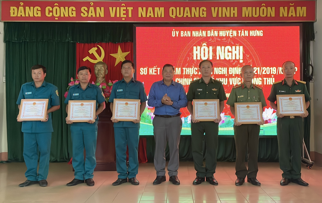 Chiều 15/8 tại huyện Tân Hưng, Cụm thi đua số 1 tỉnh Long An gồm các huyện Đức Huệ, Thủ Thừa, Thạnh Hóa, Tân Thạnh, Mộc Hóa, Vĩnh Hưng, Tân Hưng và thị xã Kiến Tường (UBND huyện Tân Hưng cụm trưởng) tổ chức sơ kết công tác thi đua, khen thưởng 6 tháng đầu năm 2024. Ông Nguyễn Hoàng Minh - Phó Giám đốc Sở Nội vụ, Trưởng Ban Thi đua - Khen thưởng tỉnh đến dự. Ông Huỳnh Thanh Hiền - Chủ tịch UBND huyện Tân Hưng, Chủ tịch Hội đồng Thi đua, khen thưởng Cụm thi đua số 1 chủ trì hội nghị.
