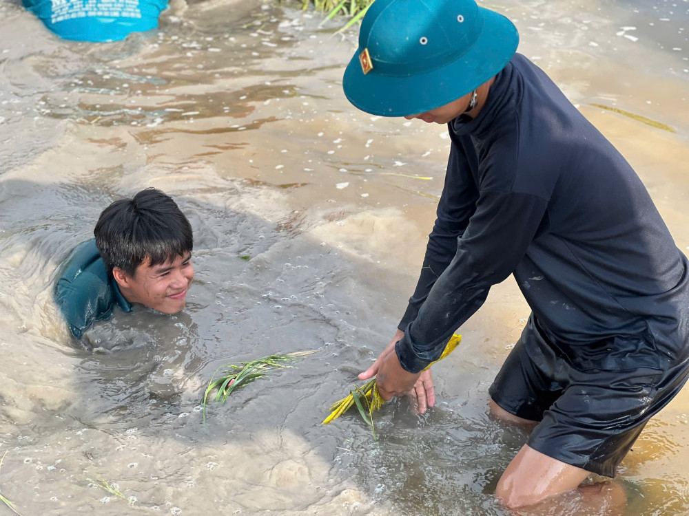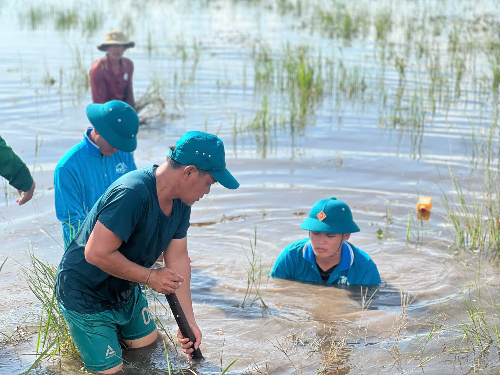 Ngày 16/10, Ban Chỉ huy Quân sự (CHQS) xã Hưng Điền huy động lực lượng phối hợp dân quân tự vệ và người dân địa phương tiến hành gia cố đoạn đê bao dài khoảng 300m tại khu vực ấp Bưng Ràm. Khu vực này hiện có hơn 140ha lúa đang chờ thu hoạch, nếu đê bao bị vỡ sẽ gây thiệt hại lớn.
