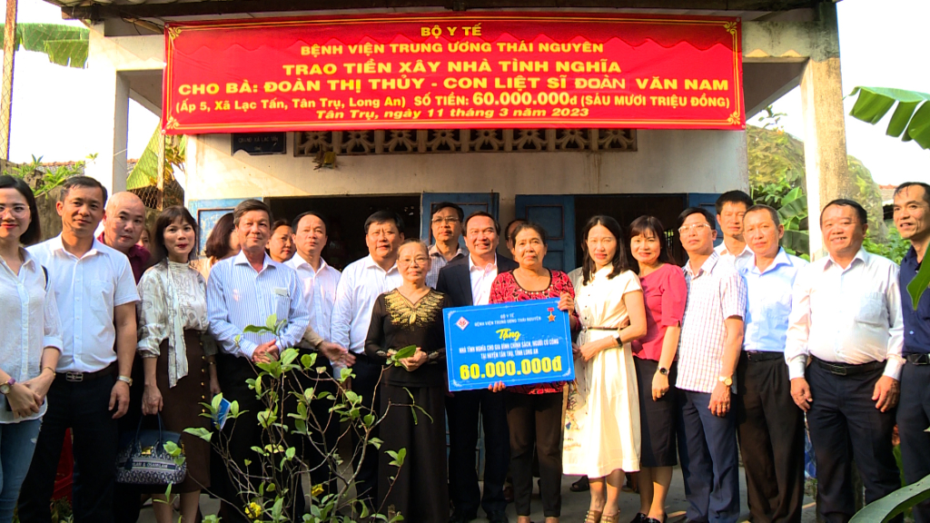 Chiều 11/3, Đoàn cán bộ y tế Bệnh viện Trung ương Thái Nguyên do PGS.TS Nguyễn Công Hoàng - Giám đốc Bệnh viện Trung ương Thái Nguyên đã đến thăm, trao tiền xây nhà tình nghĩa tại Long An và tặng quà Ban Trị sự Giáo hội Phật giáo Việt Nam tỉnh Long An.