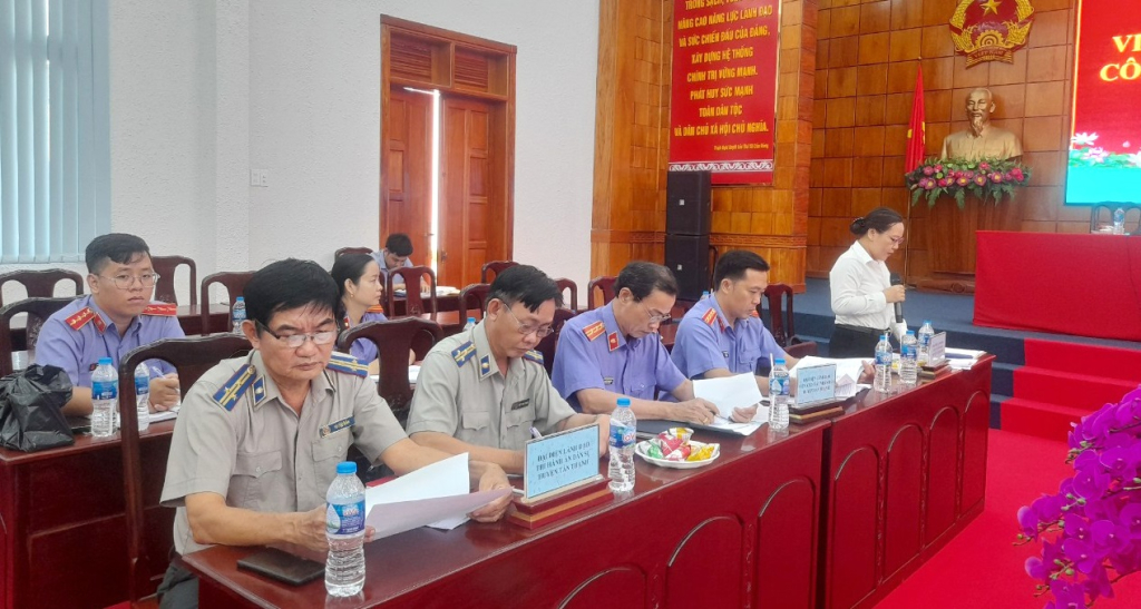 Viện Kiểm sát Nhân dân huyện, Tòa án Nhân dân huyện và Chi cục thi hành án dân sự huyện báo cáo với đoàn giám sát về kết quả thực hiện nhiệm vụ xét xử; kết quả kiểm sát hoạt động xét xử các vụ án dân sự và việc tổ chức thi hành án dân sự.