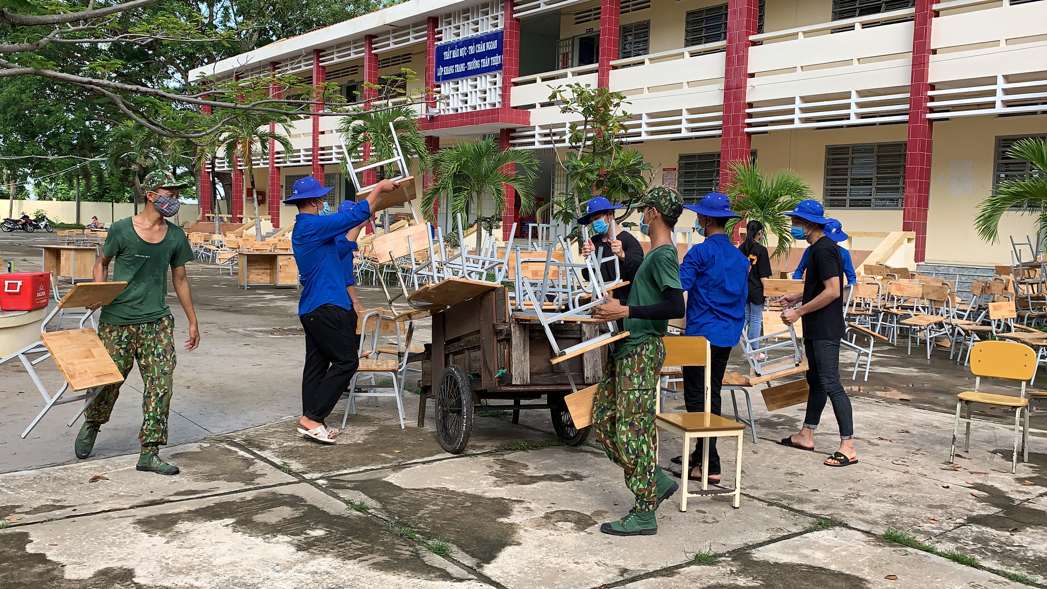 . Trên nền cơ sở vật chất hiện có của trường, huyện chỉ đầu tư xây dựng thêm hệ thống camera giám sát ;đầu tư thêm hệ thống cấp, thoát thước, chiếu sáng và xây thêm 03 khu vực nhà vệ sinh đang được các đơn vị thi công cũng đang khẩn trương hoàn thiện. Cây xanh trong khuôn viên khu cách ly cũng được cắt tỉa, tạo cảnh quang thoáng mát, sạch đẹp.