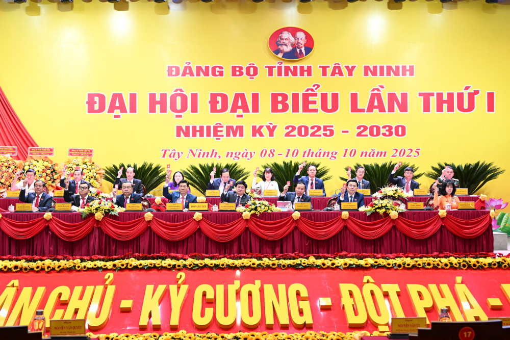 Với khẩu hiệu hành động “Đoàn kết - Dân chủ - Kỷ cương - Đột phá - Phát triển”, Đại hội đại biểu Đảng bộ tỉnh Tây Ninh lần thứ I, nhiệm kỳ 2025-2030 diễn ra trong 3 ngày (từ ngày 08 đến ngày 10/10/2025). Đây là sự kiện chính trị trọng đại của tỉnh, có ý nghĩa lịch sử sau khi 2 tỉnh Tây Ninh và Long An hợp nhất từ ngày 01/7/2025, mở ra dấu mốc cho một chặng đường phát triển mới, toàn diện và bền vững