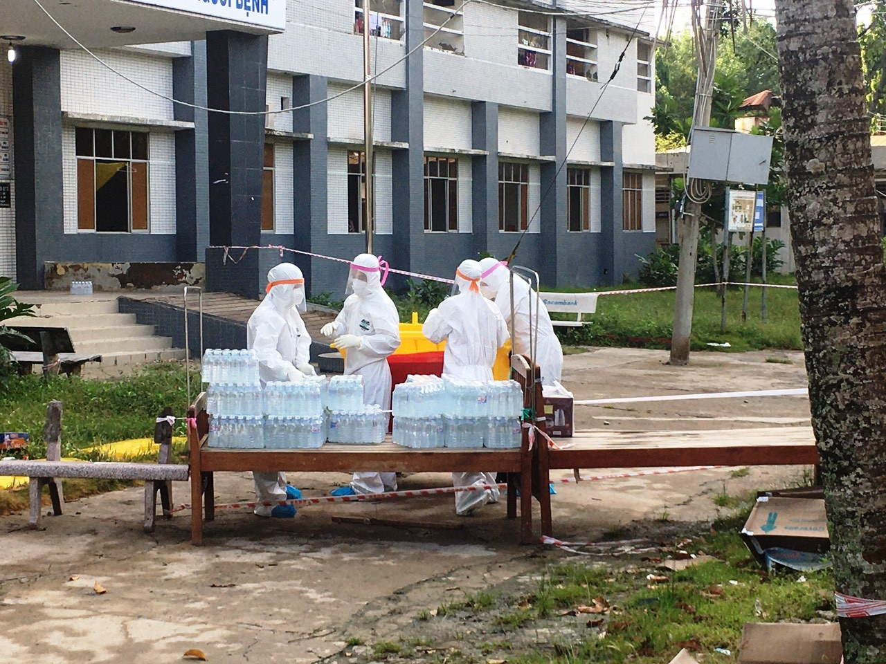 Các tình nguyện viên tham gia vận chuyển nước uống, cơm hộp cho bệnh nhân COVID tại bệnh viện dã chiến