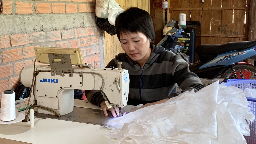 Hiện nay, tổ may gia công của chị Tánh thực hiện phụ trách công đoạn may hoàn thiện sản phẩm thời trang theo yêu cầu của công ty nguồn. Trong mọi đơn hàng, chị Tánh là người trực tiếp giám sát, hướng dẫn chị em may, mỗi người thực hiện một công đoạn để hoàn thành sản phẩm. Nhờ có nguồn hàng ổn định, giúp cho hàng chục lao động tại địa phương có việc làm và nguồn thu nhập ổn định, trang trải cuộc sống gia đình, trung bình mỗi lao động làm tại đây có mức lương dao động từ 4 - 6 triệu đồng/tháng.