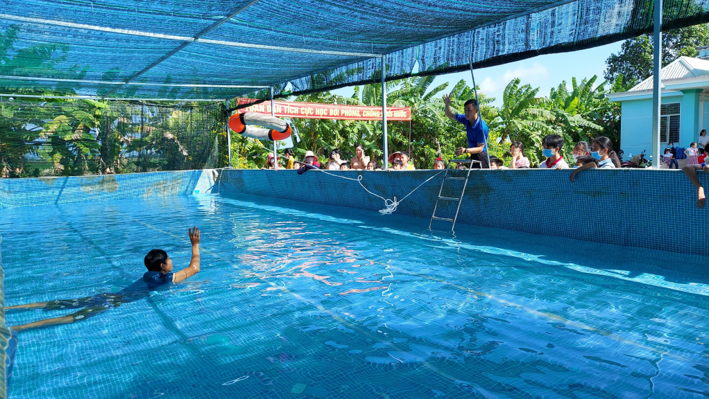 Tại buổi lễ, các em học sinh được nghe huấn luyện viên môn bơi lội phổ biến một số kiến thức về phòng chống đuối nước, ý nghĩa và sự cần thiết của việc tham gia tập luyện bộ môn bơi, kỹ năng bảo đảm an toàn trong môi trường nước; thực hành một số phương pháp cứu đuối nước cơ bản và cách xử lý những tình huống có nguy cơ xảy ra đuối nước…vv. Các em còn được tham gia trò chơi vận động về môn bơi, nhằm tạo không khí vui tươi, sôi nổi, cho lễ phát động.