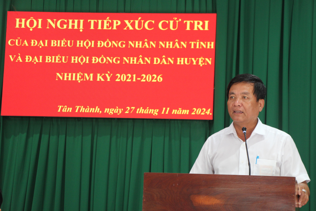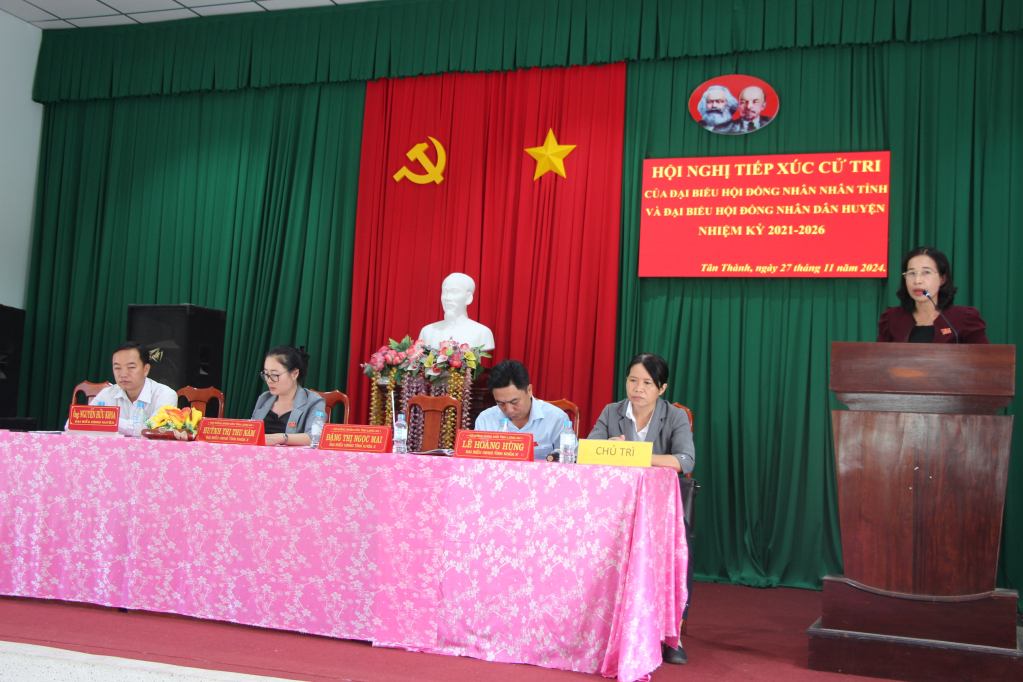 Sáng ngày 27/11/2024, Tổ đại biểu Hội đồng nhân dân tỉnh gồm ông Lê Hoàng Hùng – Phó Bí thư Thường trực huyện ủy, Chủ tịch HĐND huyện Thủ Thừa, bà Đặng Thị Ngọc Mai – Chủ tịch Hội LHPN tỉnh Long An, bà Huỳnh Thị Thu Năm – Hiệu trưởng trường Chính trị tỉnh Long An và ông Nguyễn Hữu Khoa - đại biểu HĐND huyện đơn vị xã Tân Thành, Tân Long có buổi tiếp xúc với trên 50 cử tri xã Tân Thành, huyện Thủ Thừa. Phó Chủ tịch UBND huyện Thủ Thừa – Phan Văn Tới tham dự.